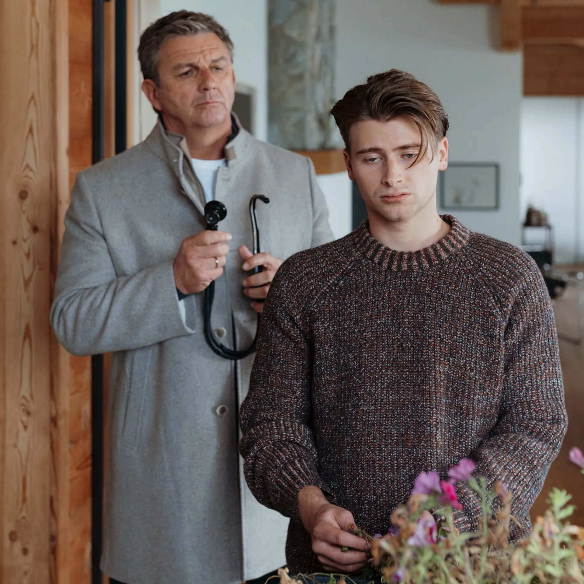 von teleschauIn der Folge "Verbotene Früchte" ringen Dr. Martin Gruber (Hans Sigl, links) und sein Freund Dr. Alexander Kahnweiler (Mark Keller) um zwei Menschenleben.