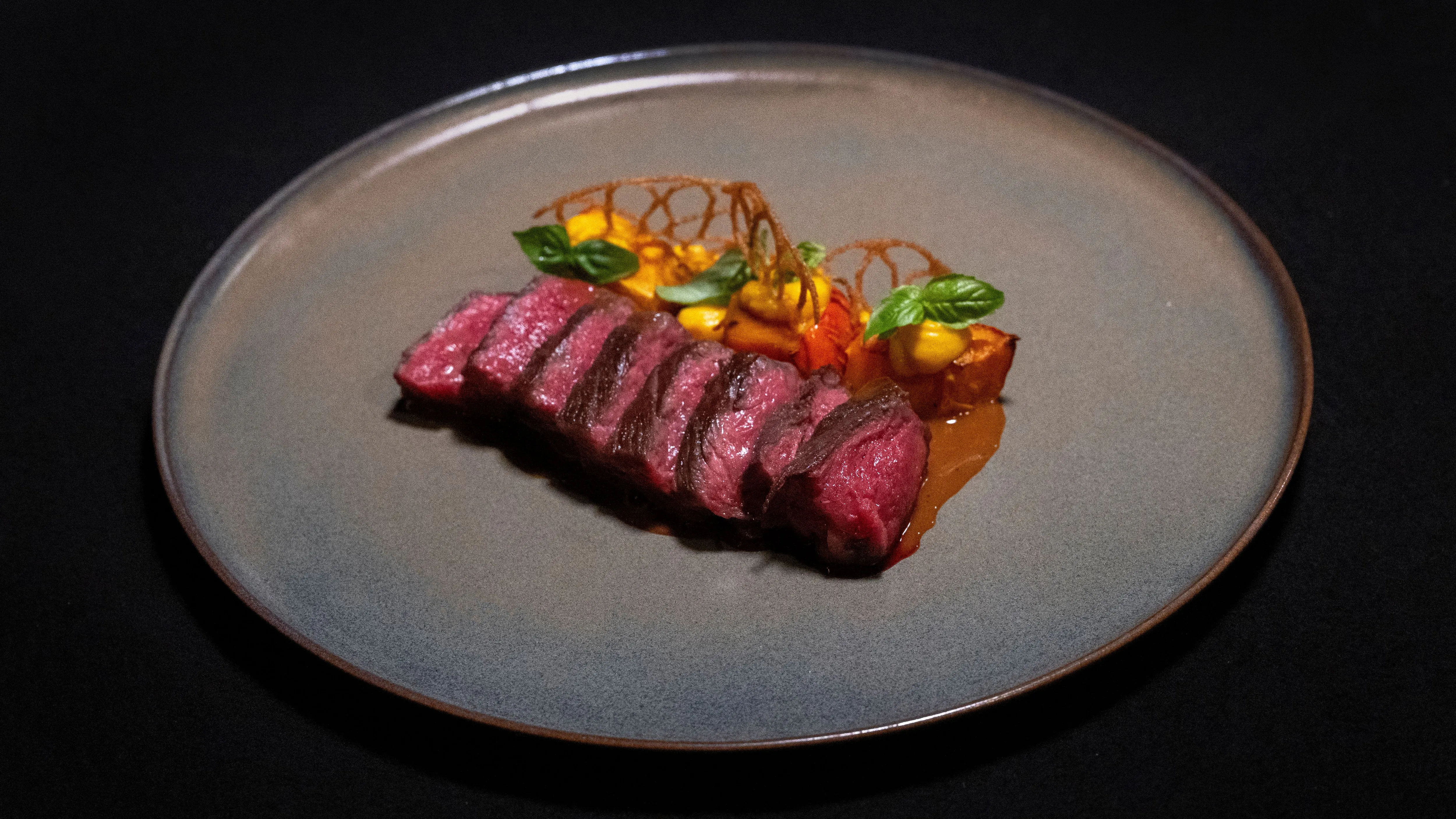Rezept von Marcel Kokot: Dry Age Filet mit Hanfkruste, Entrecôte, Beinwellwurzel und Chinkali